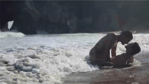Salt blurs their shapes, heat pulls them close, and Rafael enters the water before fear can stop him.